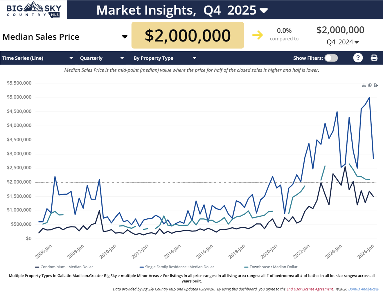 Q4 2025 update: Combined Big Sky condo, townhome, and home price is the same as the Q4 2024 price.